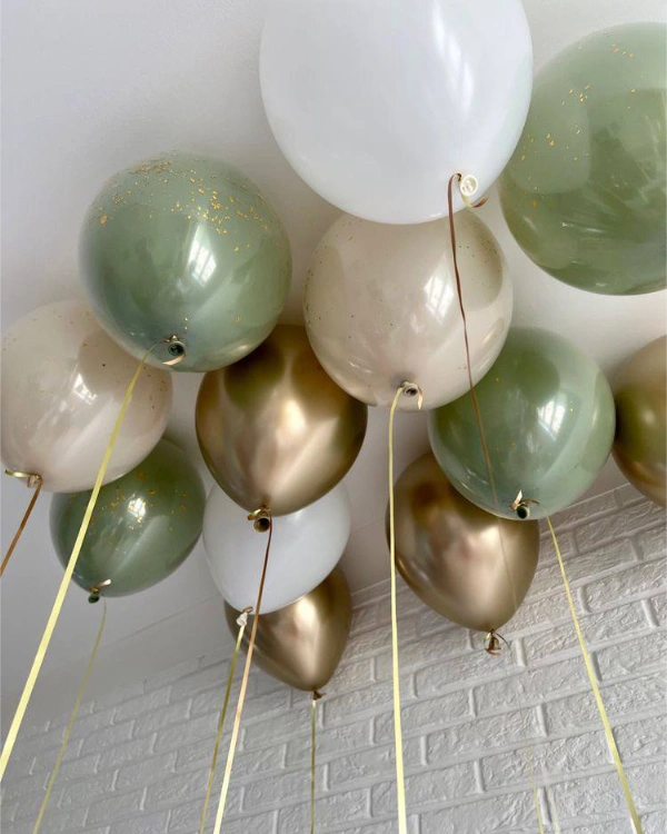 Теперь необходимо рассмотреть его сочетаемость с другими оттенками. Зеленый цветами идеально сочетается с белыми и желтыми воздушными шарами. Для интересных комбинаций можно сочетать зеленые шары с серебром. Эксцентрично выглядит зеленый шар с красным цветом.