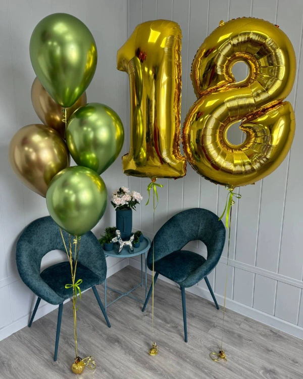 Вторая группа – это фольгированные шары в зеленом цвете и разнообразной формы, самыми популярными моделями являются: цифры, буквы, сердца, полумесяца других предметов.